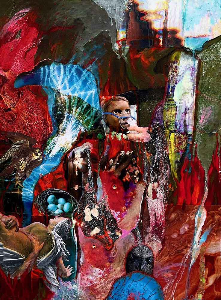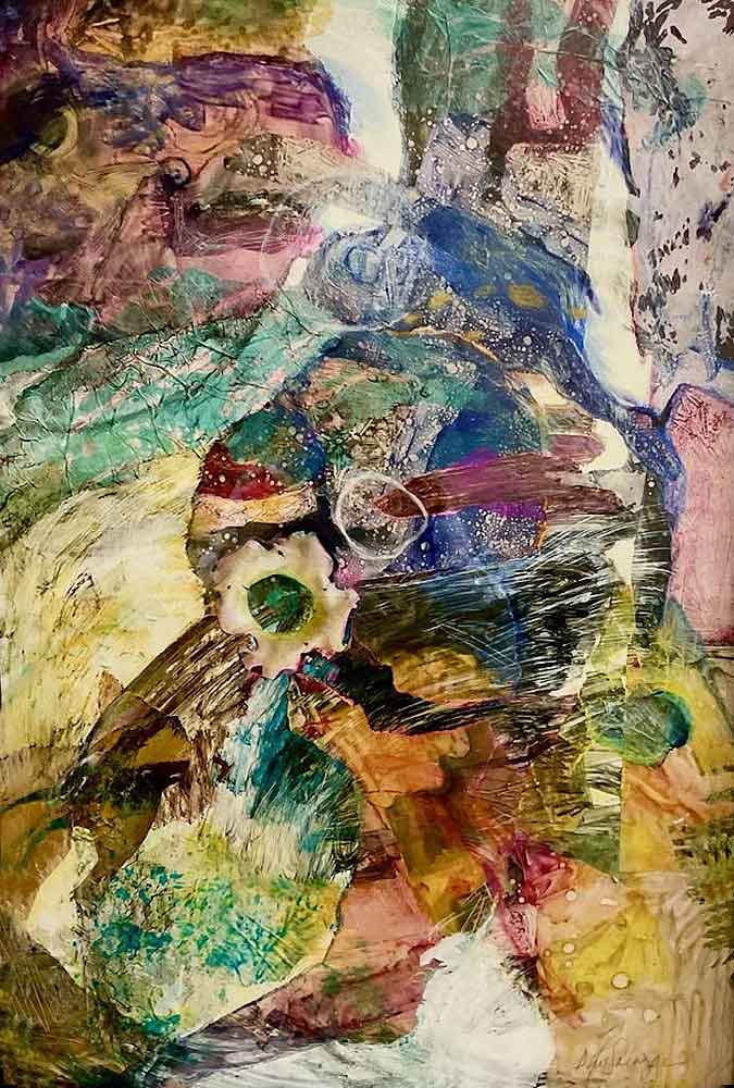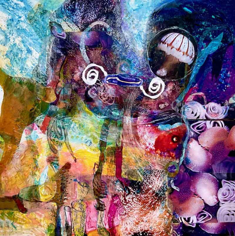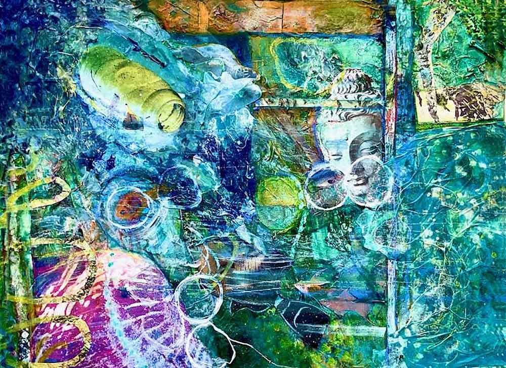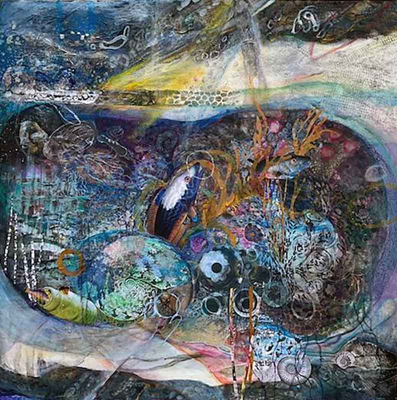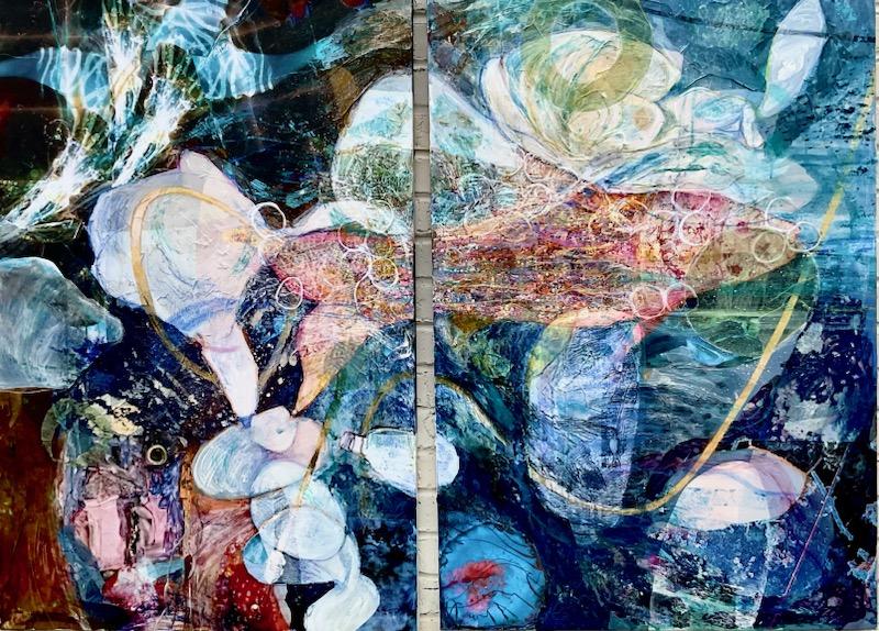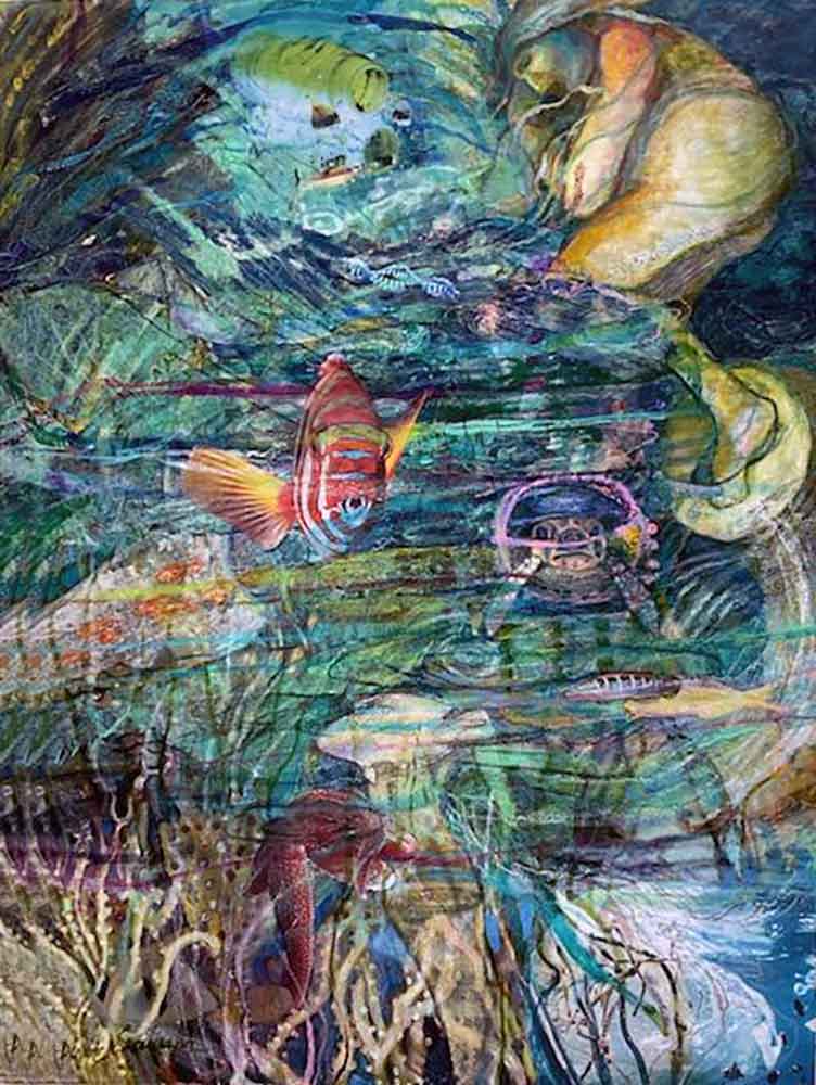 Paintings that relate to and explore the proliferation of plastics in our oceans, endangering both the sea life and humans.